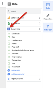 - You should now see the orange three-bars icon with your GA property name in the right-hand Data panel.