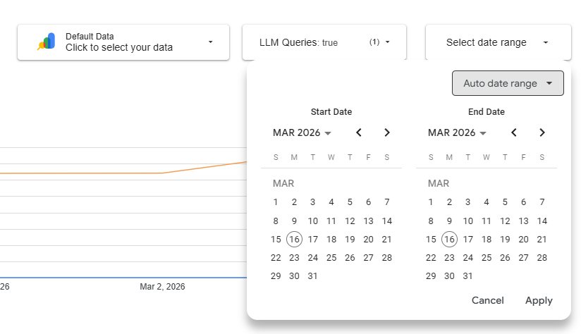 4. Start adjusting parameters such as the date range so you can view unique AI query insights.